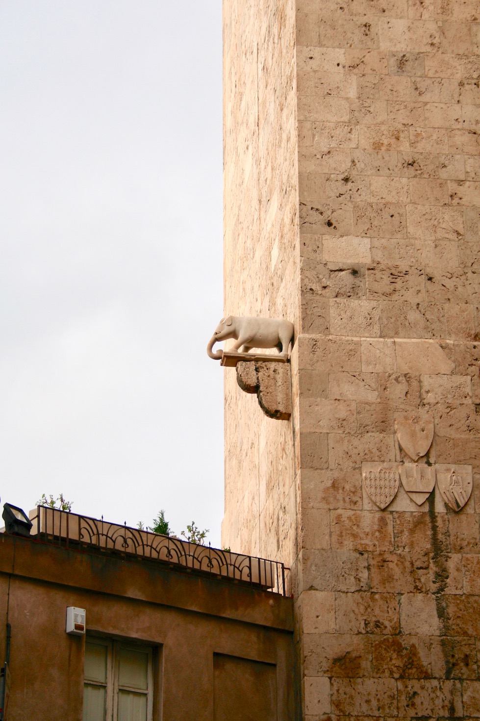 No pienses que las reducidas dimensiones de este elefante harán que pase inadvertido: lo encontrarás en la esquina de Santa Croce, siguiendo la fila de turistas que esperan para poder fotografiar esta torre que, junto a la de San Pancracio, es una de las dos medievales que dan acceso al Castillo. En 1535 Carlos V la incluyó entre las mejores obras militares de Europa, aunque los pisanos la habían construido en 1307, adornada con un elefante de mármol como símbolo del poder marítimo de Pisa.