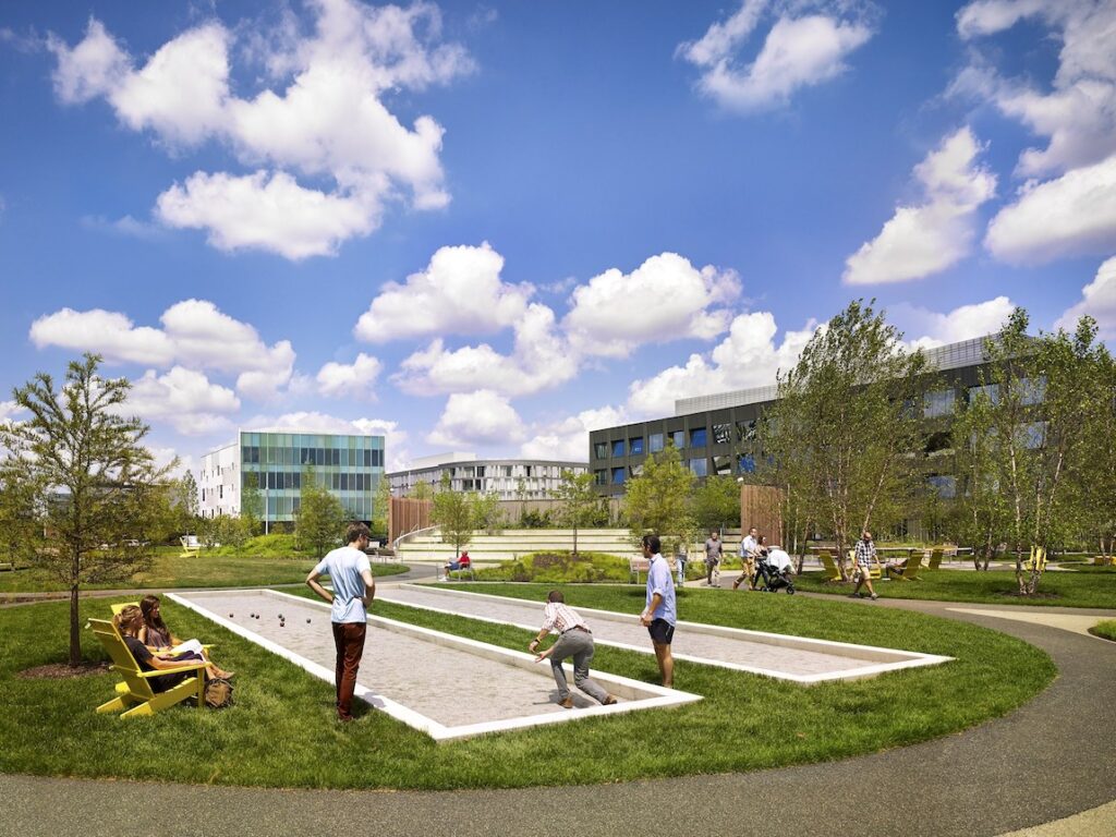 Lo que antes era un espacio marcado por los humedales y el paso de las aves migratorias, es hoy Central Green, uno de los espacios más vanguardistas y sostenibles de Filadelfia, situado en el Philadelphia Navy Yard Corporate Center. James Corner Field Operations firma este diseño, un inmenso círculo rodeado por una pista para paseantes y runners, en cuyo interior se acoplan otros círculos que albergan un bosque de hamacas, un anfiteatro, canchas de petanca y ping-pong, estaciones de ejercicios…