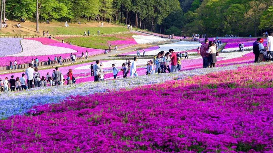Uno de los espectáculos cromáticos más difíciles de ver en otras partes del mundo es la floración del musgo rosa. En puntos como el parque Chichibu Hitsujiyama, en Saitama, de mediados de abril a finales de mayo las colinas se tiñen de intensos magentas y púrpuras gracias a sus nueve tipos de este musgo; sus flores, que apenas levantan centímetros del suelo, se convierten en una alfombra natural.