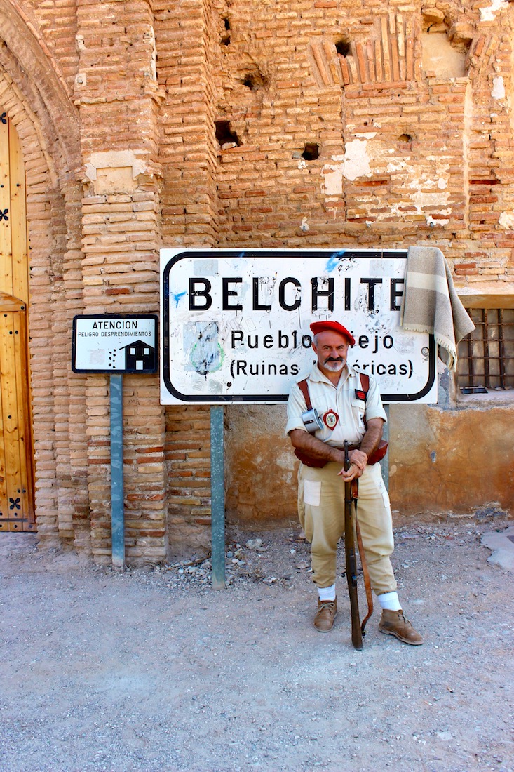Coge fuerzas, porque la primera visita de la zona, la que da nombre a la comarca, es impactante. Impresiona hacerte un selfie con el carlista que espera en la puerta, pero franquear el Arco de la Villa que da entrada al Pueblo Viejo de Belchite te deja sin habla. Tras un breve espacio dedicado a la historia y la paz, con paneles explicativos, recorrerás un cementerio arquitectónico con muros agujereados y paredes desnudas. Aquí se vivió uno de los episodios más cruentos de la Guerra Civil, una ofensiva menor, diseñada como paso previo para recuperar Zaragoza, que terminó con más de 6.000 muertos, muchos de ellos civiles.