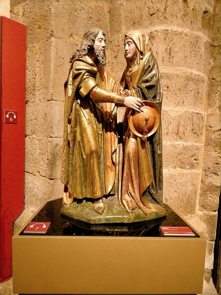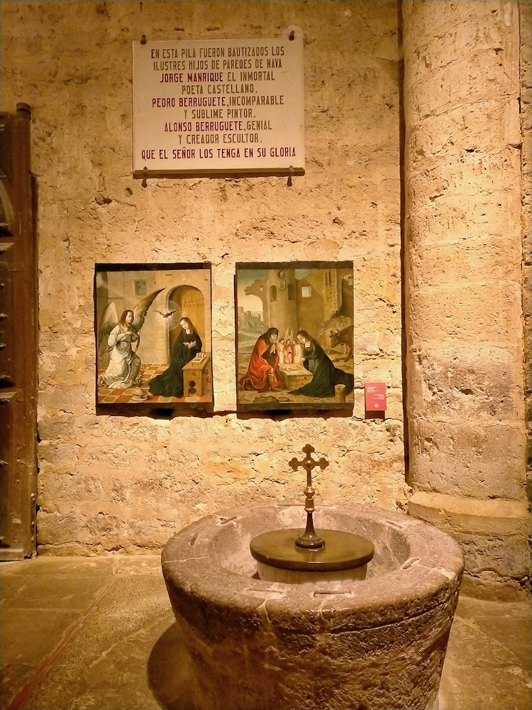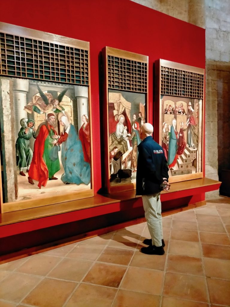 Del taller de este artista europeo que trabajó en Becerril de Campos salieron muchas de las obras de esta sede, como el Padre Eterno o el Arcángel San Miguel. Junto a ellas, las obras de otros dos grandes –Juan de Juni y Francisco Giralte– comparten protagonismo con las espléndidas pinturas de Pedro Berruguete, como las mediáticas La Adoración de los Reyes Magos y El Nacimiento de Cristo, que fueron imagen de sendos billetes de la Lotería Nacional. Si crees que la magia ha terminado, antes de salir mira al techo, porque el sotocoro alberga un extraordinario alfarje de madera policromada.