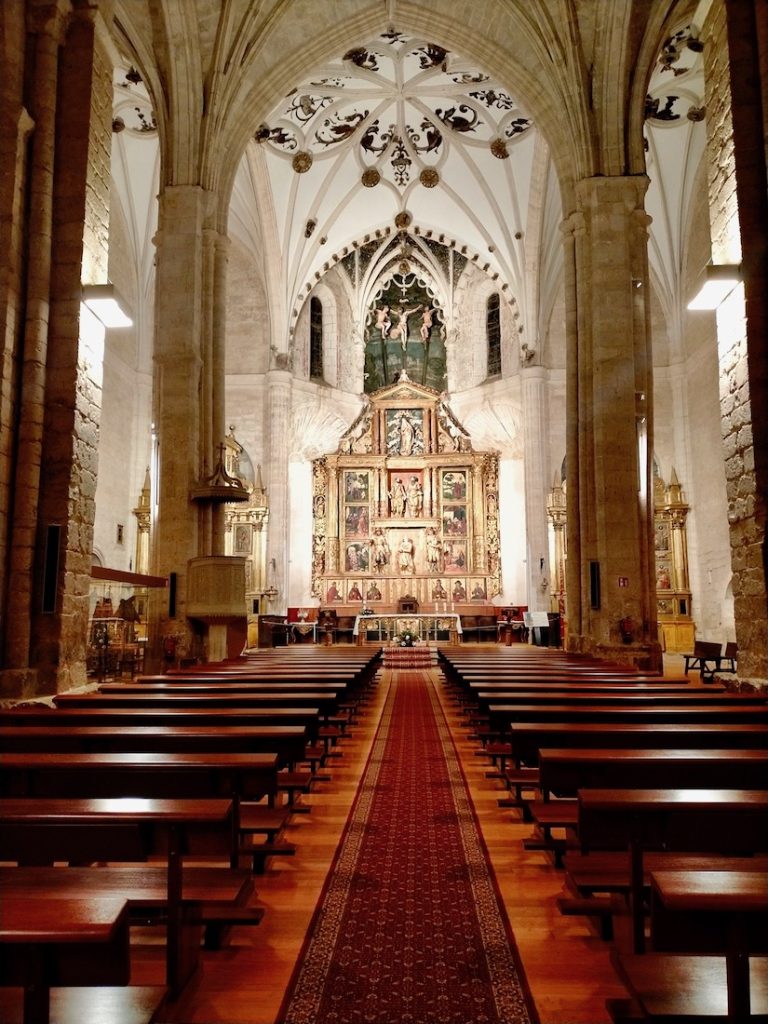 Pero lo más impactante de San Pedro son los sepulcros góticos –del siglo XIII, labrados en piedra calcárea y con restos de policromía– y el extraordinario Retablo Mayor, una obra firmada por Francisco Giralte, discípulo de Alonso Berruguete, presidido por San Pedro en cátedra. También impactante es la antigua puerta de acceso –otra obra de Giralte, esta vez, realizada en madera de nogal– y tres vírgenes de diferentes épocas: Nuestra Señora de Villafilar –una talla anónima del siglo XII que, probablemente estuviese con el Niño– y la representación de la Virgen con el Niño de Giralte y de Juan de Valmaseda.
