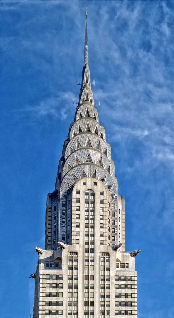 Nueva York, rascacielos y art déco son tres términos que, a principios del pasado siglo, jugaban en la misma liga. El estilo arquitectónico simbolizaba el mismo progreso y modernidad que los nuevos rascacielos de la ciudad. El Edificio Chrysler, con sus 77 plantas y 319 metros fue el más alto del mundo durante 11 meses y sus gárgolas, que emulan los ornamentos del Plymouth, son ya historia.