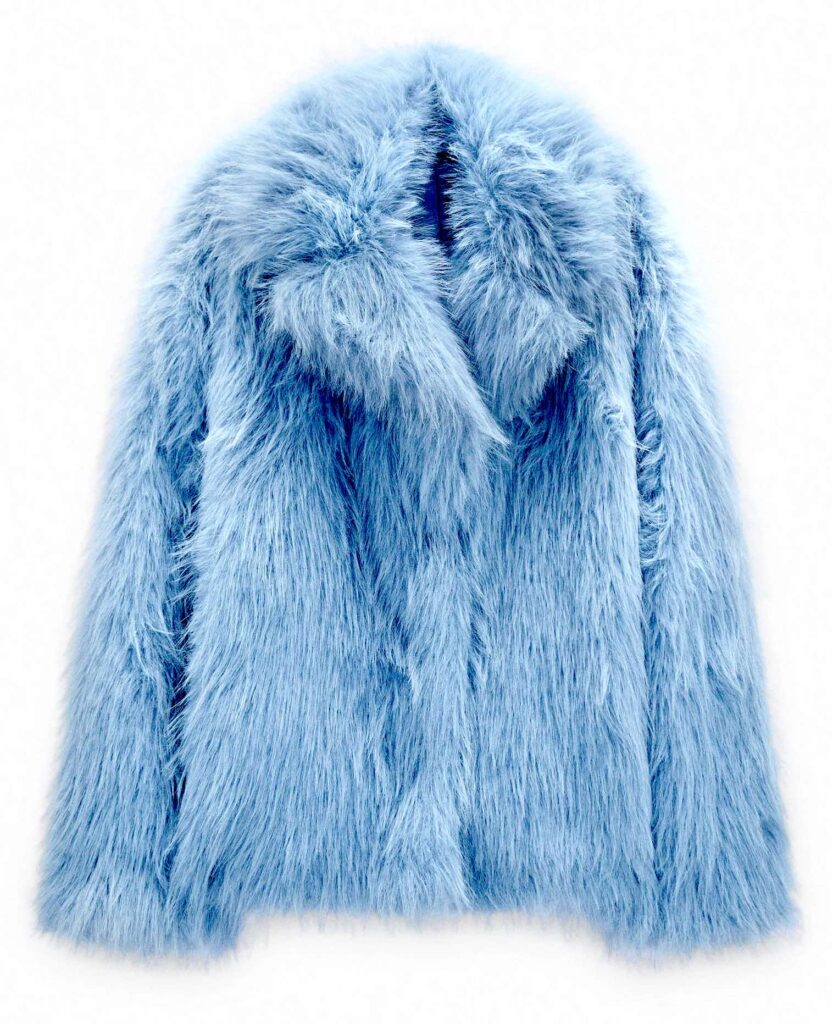 Te costará tanto separarte de este abrigo corto y de su delicado color azul hielo que desearás que siga el frío para cobijarte bajo su voluminoso efecto pelo. En Parfois, 69,99 €