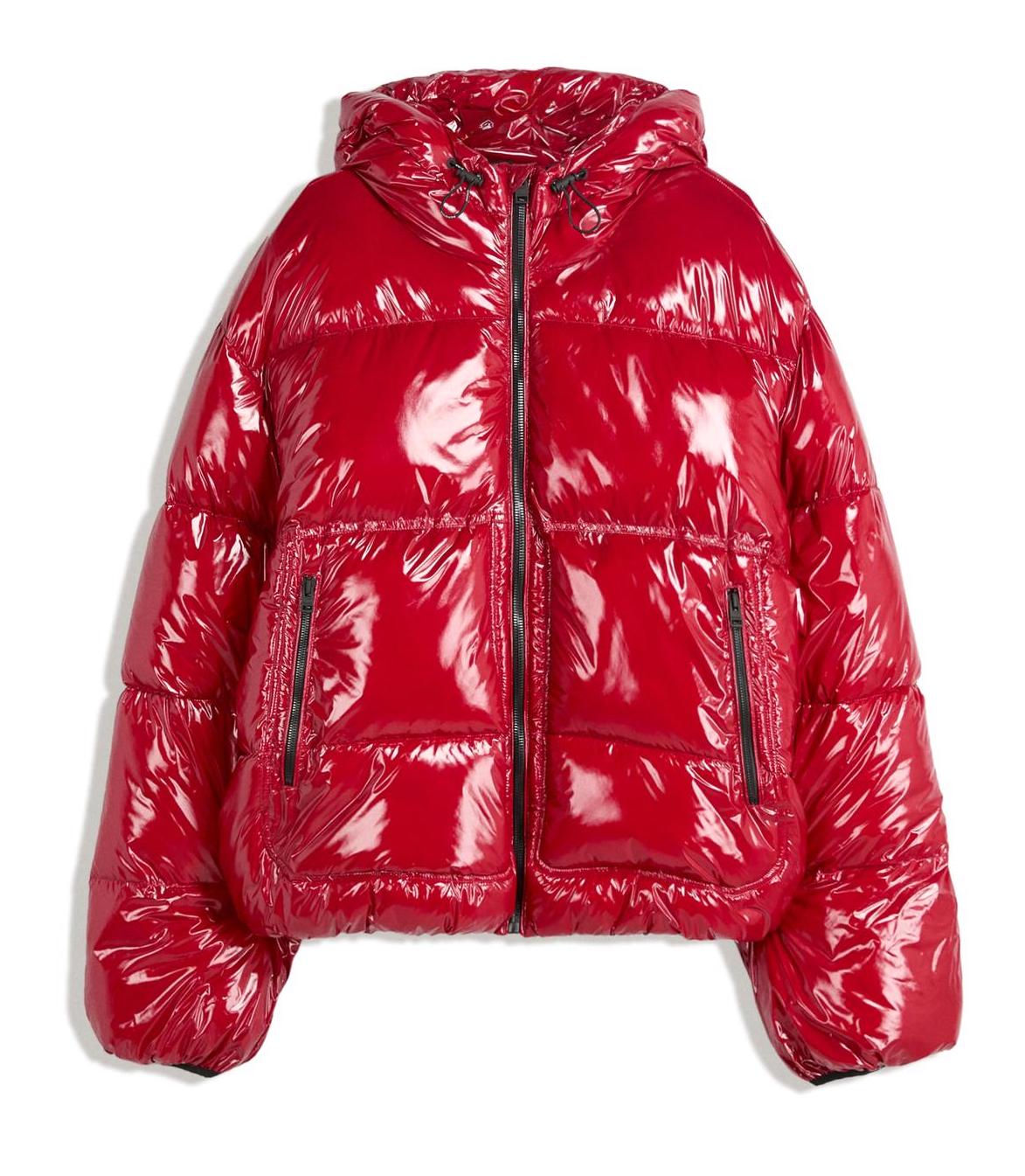 Si buscas un regalo práctico con el que combatir las bajas temperaturas, te encantará esta cazadora puffy con capucha para hombre, confeccionada con poliéster reciclado en un arriesgado color rojo. En Bershka, 59,99 €