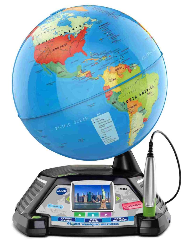 Para poner el mundo a tus pies, échale un vistazo el Globo Interactivo Multimedia, que incluye juegos y actividades, y es el único con pantalla a color y vídeos oficiales de la BBC. En VTech, 124,99 €