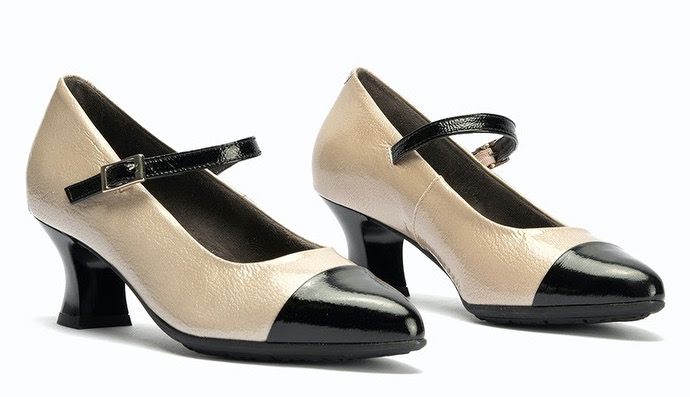 Clásicos, cómodos y rebosantes de estilo. Así son estas merceditas de piel de charol bicolor negro y piedra, con tacón de carrete y cierre de pulsera. En Calzados Pitillos, 74,95 €