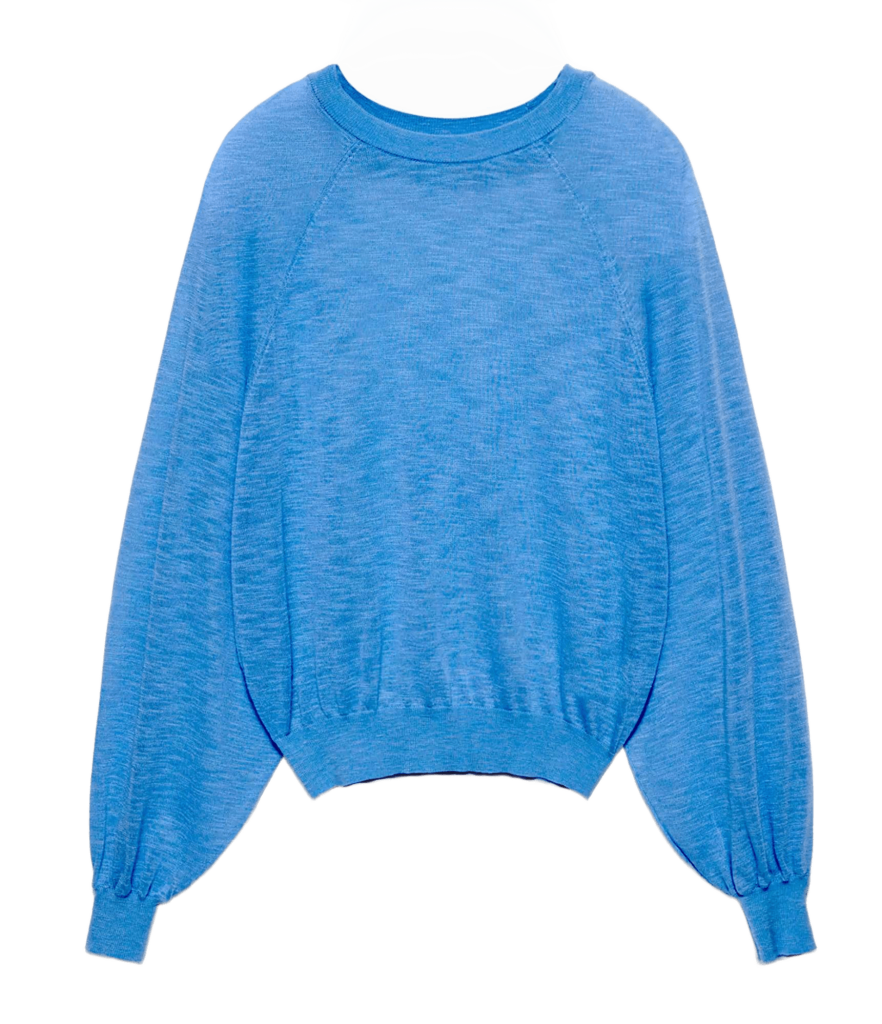 Fresco, vibrante y con tonos que recuerdan los mares del sur, el AZUL CAPRI es uno de los colores que llenan esta temporada. Búscalo en camisetas y jerseys de punto ligero como este, oversize y con escote redondo. En Pull & Bear, 25,99 €