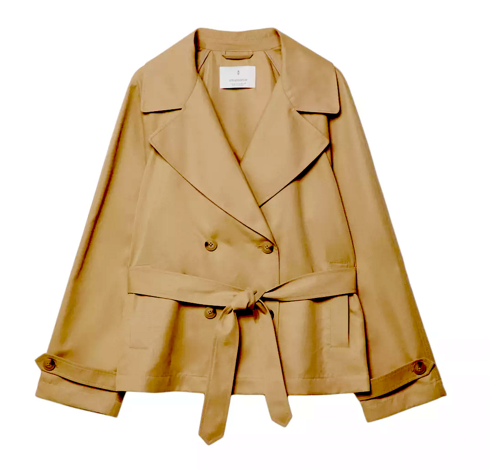 Mientras hombreras, colgantes y estampados de flores crecen en tamaño, las gabardinas se acortan hasta convertirse en un chaquetón. Es el TRENCH CORTO, un imprescindible de tu armario como este –con cinturón y trabilla y botón en los puños– que sienta muy bien. En Stradivarius, 29,99 €