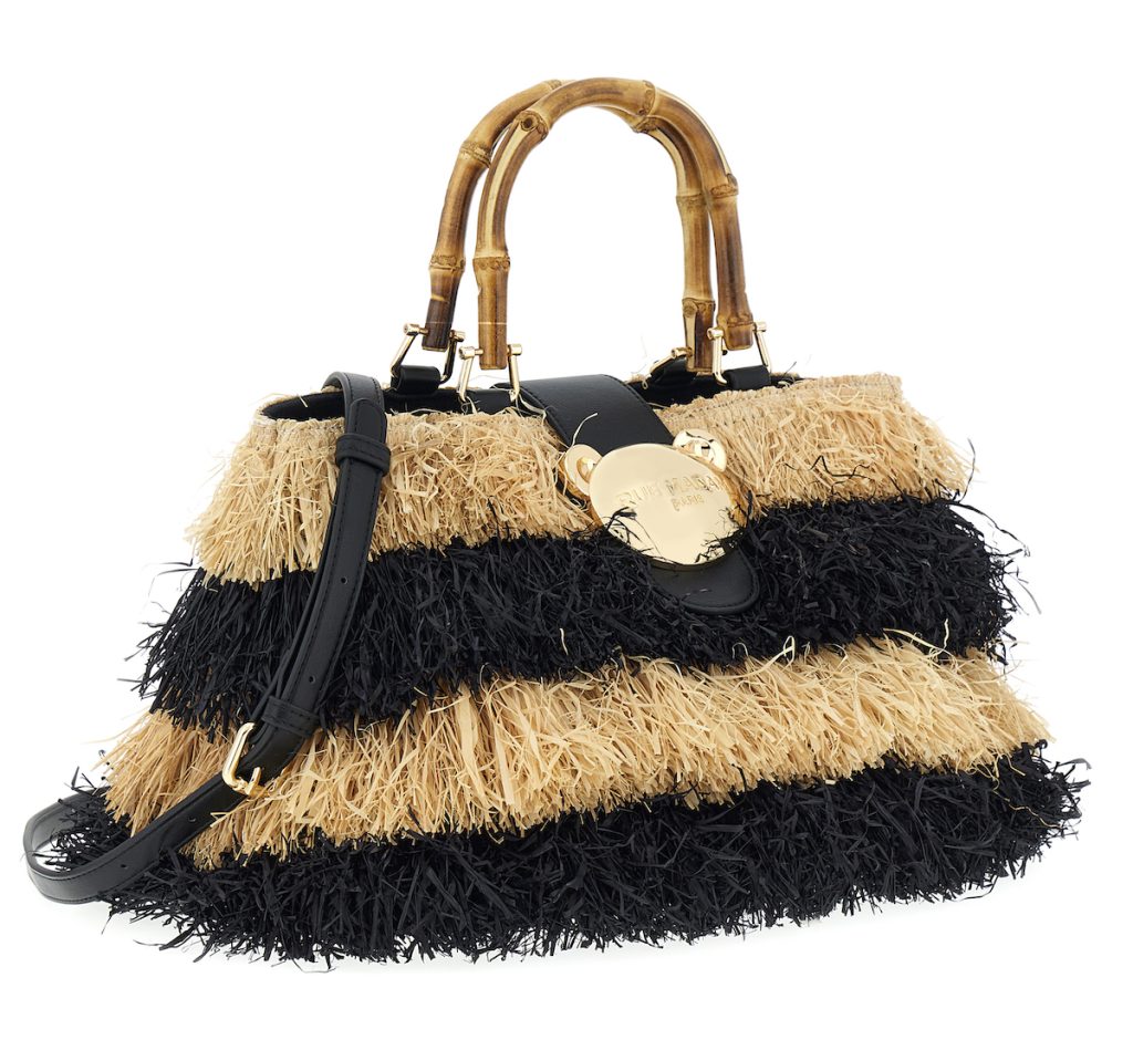 Ya los hemos disfrutado en este invierno pero, también en primavera, los FLECOS vienen para quedarse. Si conectas con este look de ida y vuelta, añade flecos largos en prendas estilo cowboy y cortos en accesorios, como este bolso tipo cubo de rafia, con flecos naturales y asas de bambú. En Rue Madam Paris, 219 €