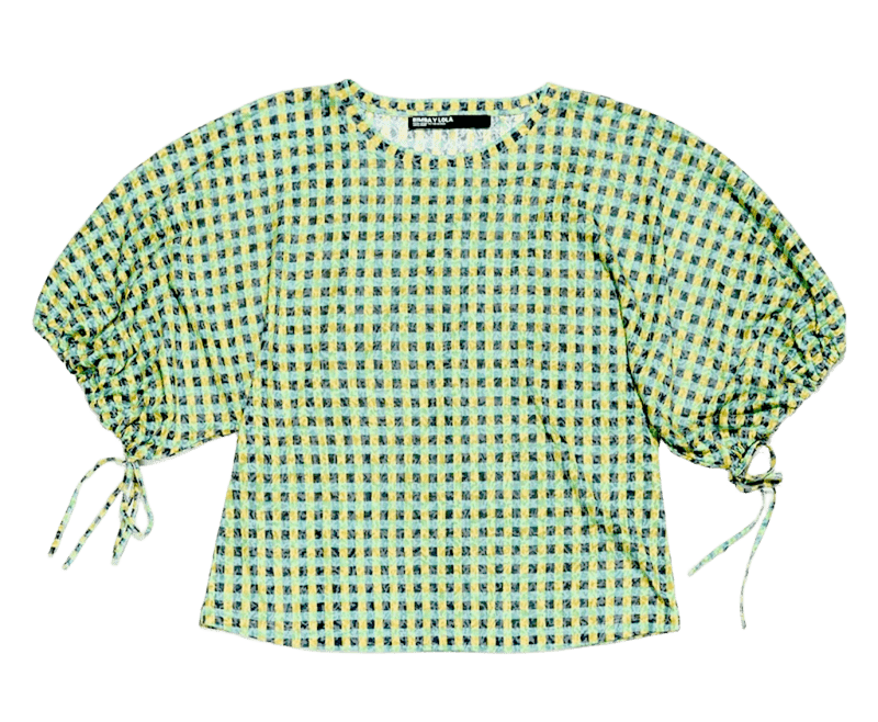 Con falda, vaqueros, mini, cargo… Esta camiseta de cuadros verde combina con todo, y las mangas 3/4 de corte murciélago con puño le dan un toque original. En Bimba y Lola, 47,60 €