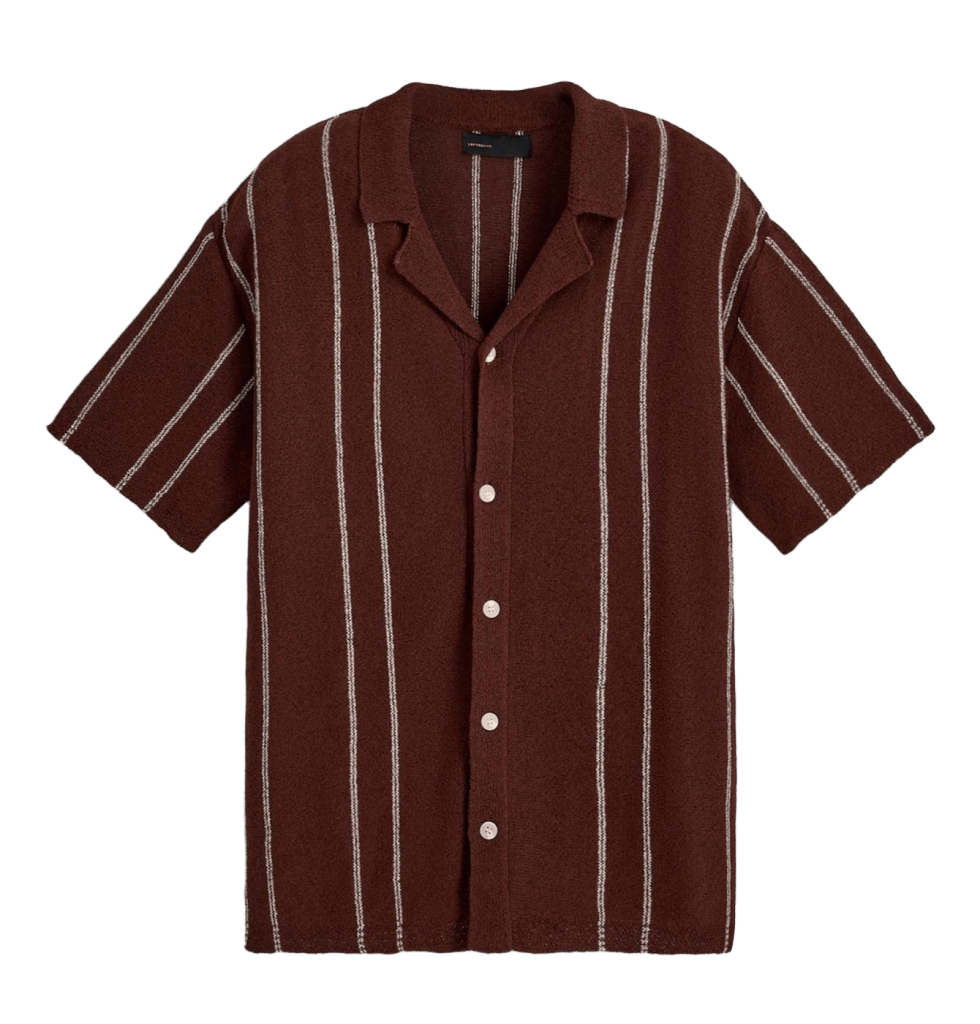 Dale un toque vintage a tu look con esta camisa para hombre color burgundy, confeccionada con tejido bouclé y cuello con solapa. En Lefties, 15,99 €