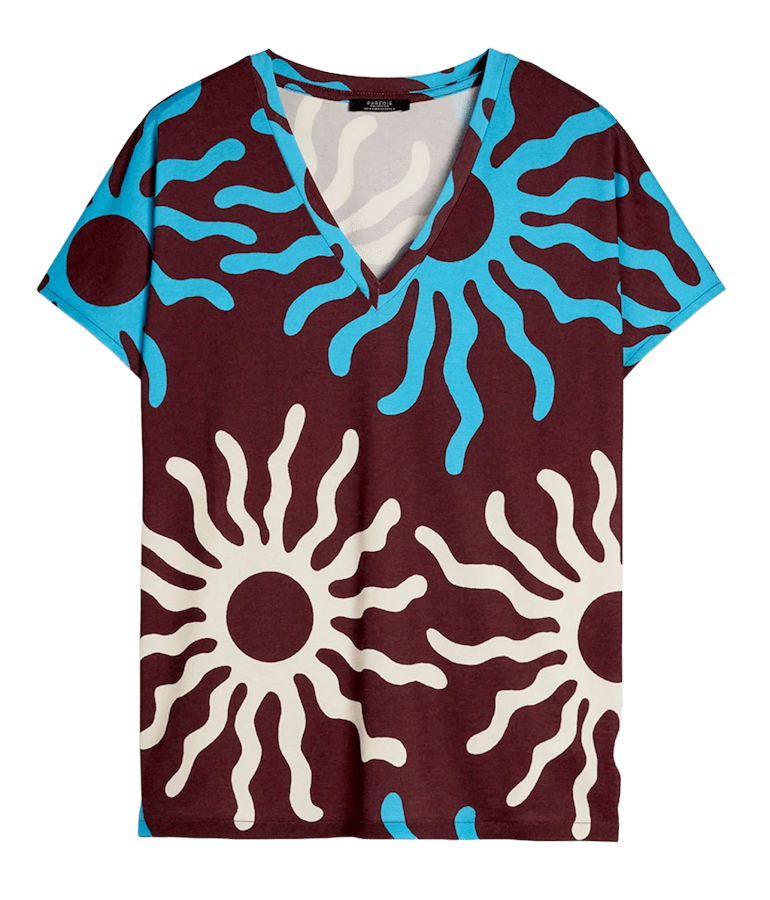 Si el presupuesto no te da para viajar a tierras africanas, al menos llévate una camiseta con estampados étnicos como esta, con cuello en V. En Parfois, 19,99 €
