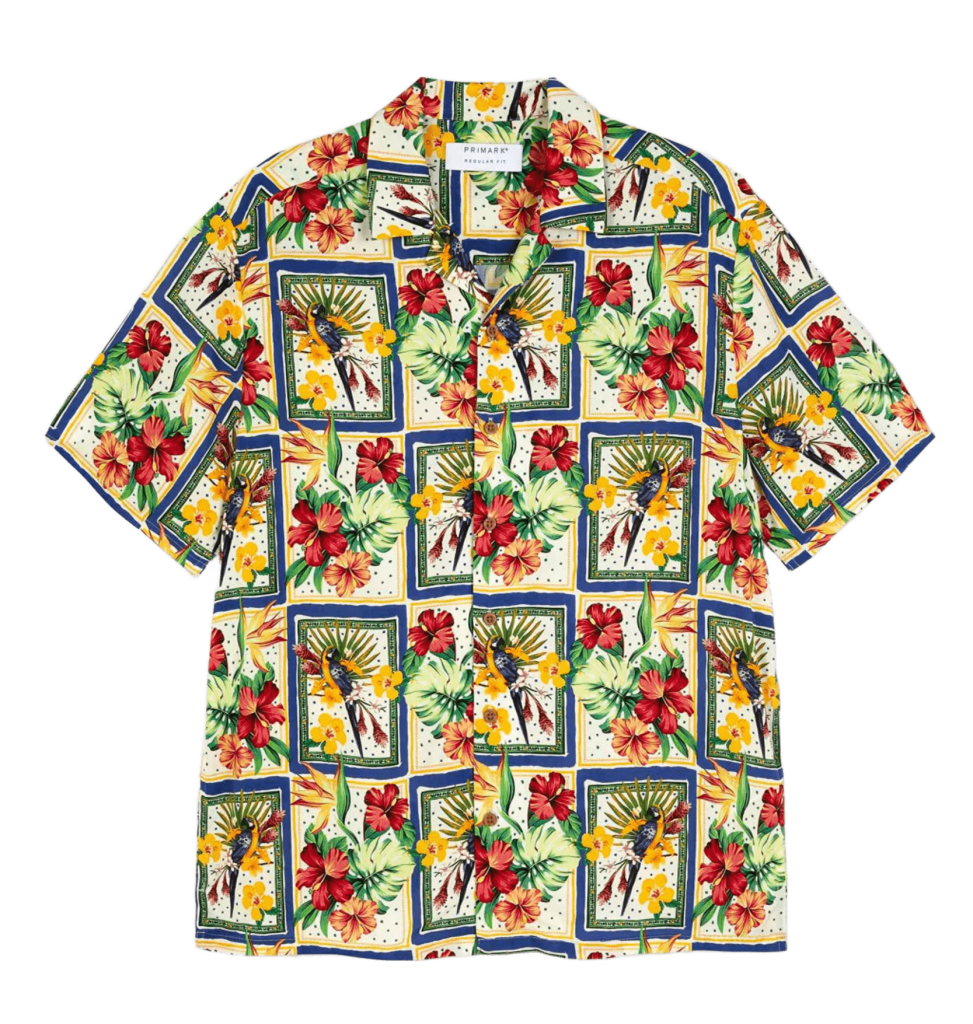 A cuerpo o en plan sobrecamisa, esta camisa tropical para hombre, con cuello cubano y botones, te transportará a la mismísima selva. En Primark, 12 €