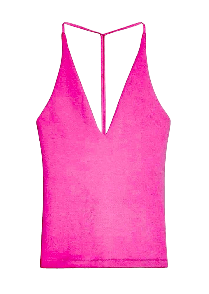Con este top rosa con cuello halter y tira en la espalda, no solo darás una vuelta de tuerca a la originalidad; además, cuidarás el planeta, ya que está confeccionado con algodón de cultivo orgánico certificado. En Zara, 12,95 €