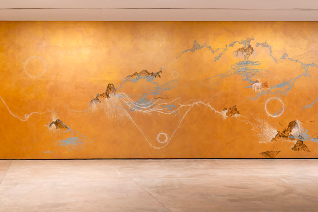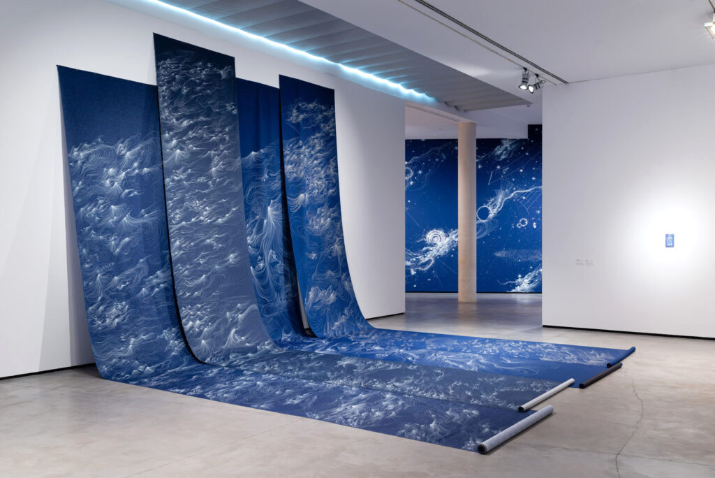 La artista brasileña encara esta instalación como un paisaje inmersivo, una invitación al espectador para que, a través del dibujo, la línea y el ritmo, recorra este camino sensorial dividido en tres espacios: un homenaje a los siete mares, otro que sugiere un paisaje sin fronteras y un tercero, que alude a la noche.