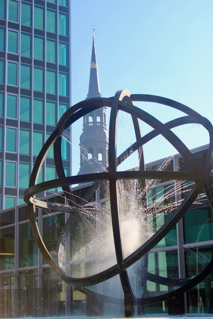 Cruza el Trotsbrücke hasta alcanzar la Willy-Brandt-Strasse y encontrarte con San Nicolás, una de las cinco iglesias protestantes de la ciudad. Tras la II Guerra Mundial quedó destrozada, pero hoy este memorial es todo un símbolo y sigue siendo el segundo edificio más alto de la ciudad. Cerca, Globus Brunnen, la fuente firmada por Kurt Kranz que recuerda la conexión de Hamburgo con el comercio.