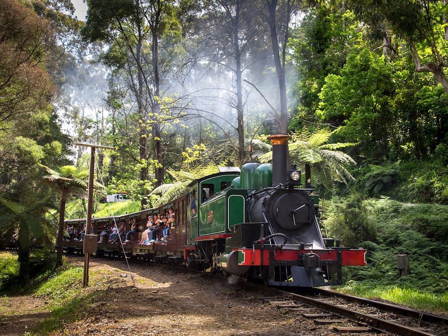 A una hora del centro de Melbourne, el tiempo parece haberse detenido en Puffing Billy, la locomotora de vapor más antigua y mejor conservada de Australia. Sentado en sus vagones abiertos, con las piernas por fuera, la ruta te lleva por la cordillera de Dandenong, una sucesión de helechos gigantes y fresnos de montaña que concluye en la estación de Lakeside y su pintoresco Centro de Visitantes.