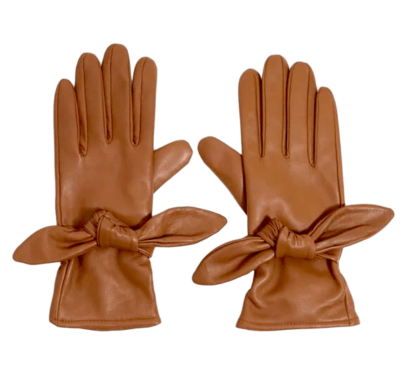 Originales, cálidos y con un diseño único. Así son estos guantes de piel, realizados en color camel y con un gran lazo de adorno. En Bimba y Lola, 71,20 €
