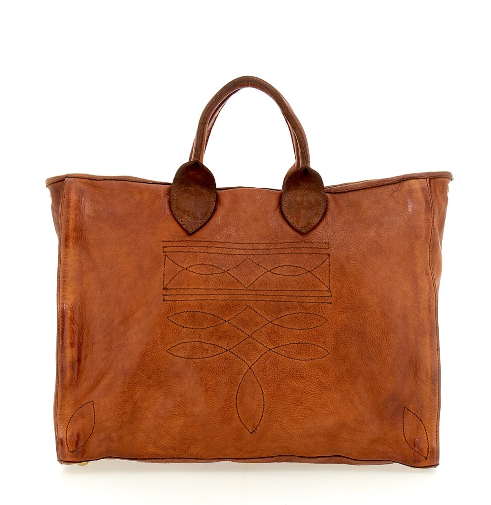 Inspirado en el mundo de los camperos tejanos, el bolso shopper Ágata, incluye correa de hombro ajustable y, como el resto de artículos de la firma italiana, está realizado artesanalmente con piel de primera calidad. En Campomaggi, 364 €
