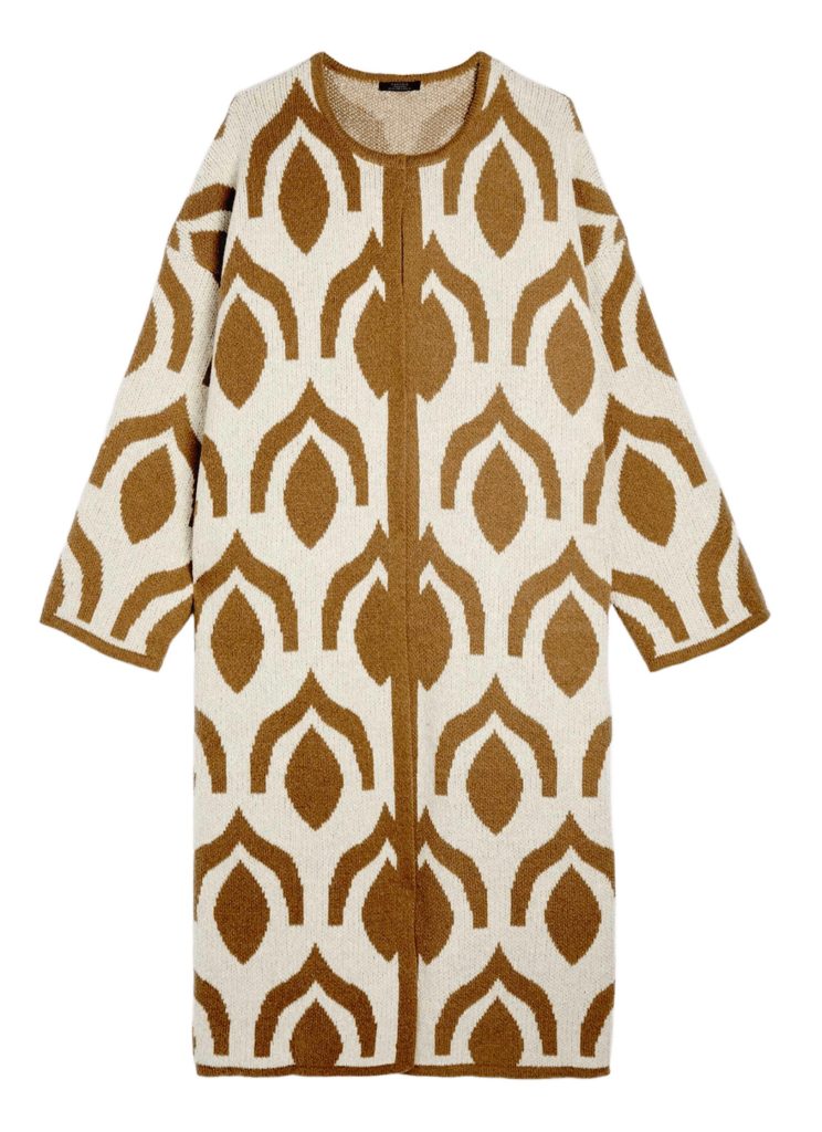 Además de ser una de las tendencias de la temporada, el cárdigan es el complemento perfecto para tu look. Este, además, es largo y realizado con punto jacquard. En Parfois, 49,99 €