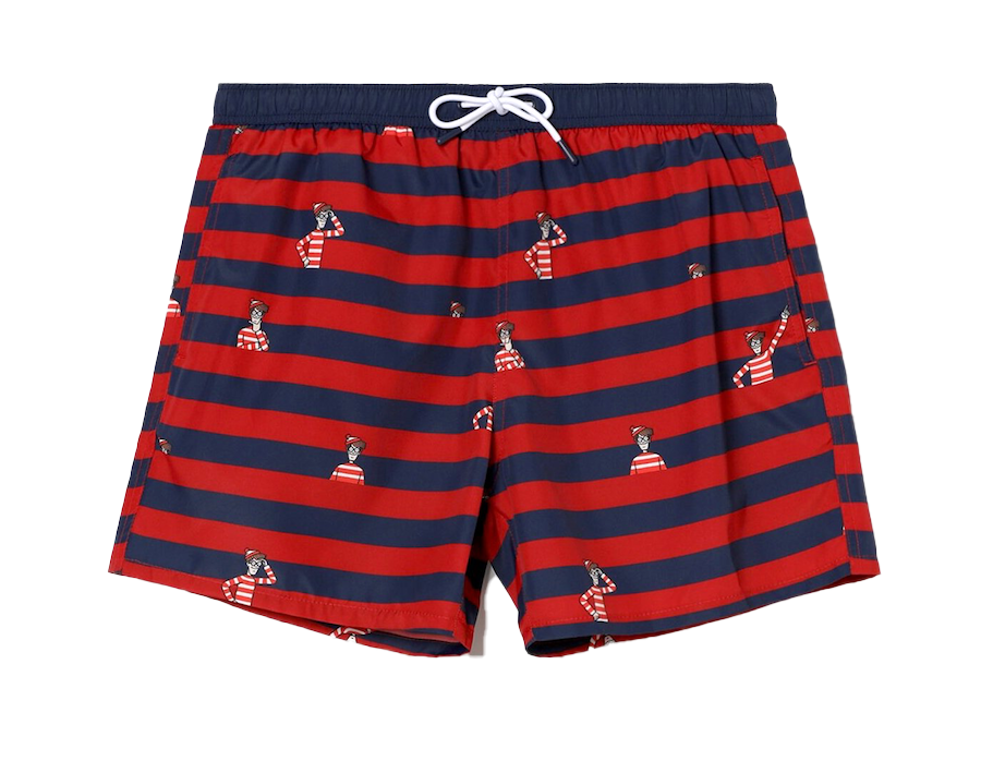 Saca tu parte más divertida con este bañador con cordón y cintura elástica, estampado con motivos de ¿Dónde está Wally? En Lefties, 4,99 €