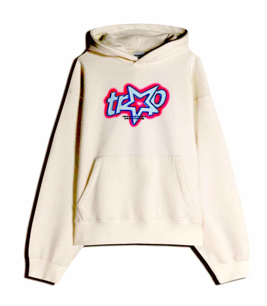 Cómoda, diferente y calentita. Así es esta sudadera con capucha, para hombre, confeccionada en algodón y poliéster reciclados y con estampado en delantero y espalda. En Bershka, 19,59 €
