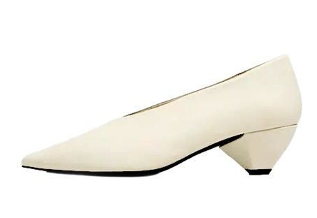 Si necesitas poner una nota discordante hasta en tus prendas más clásicas, te encantarán estos zapatos de salón, de piel color marfil, pero con un insólito tacón de estrella. En Bimba y Lola, 74 €