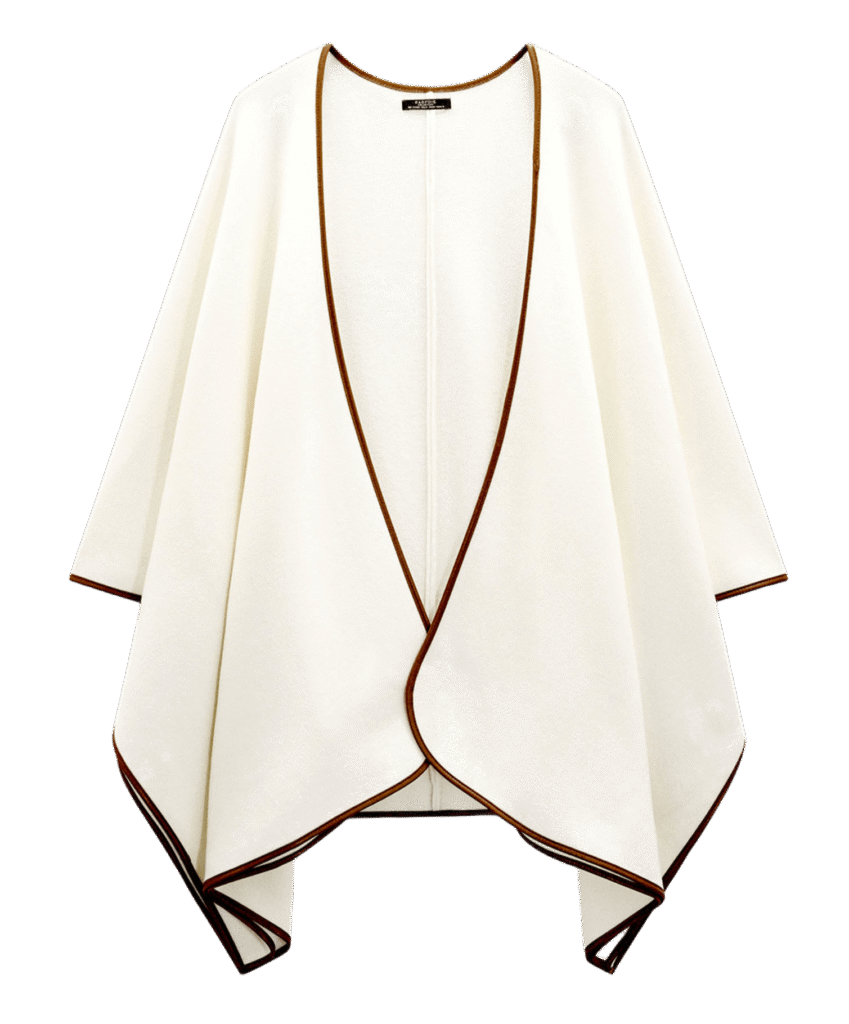 Nunca acaba de irse del todo pero, este invierno, el poncho reivindica el liderazgo de las pasarelas como una prenda versátil y cómoda. Este, además, tiene un elegante pespunte en contraste. En Parfois, 29,99 €