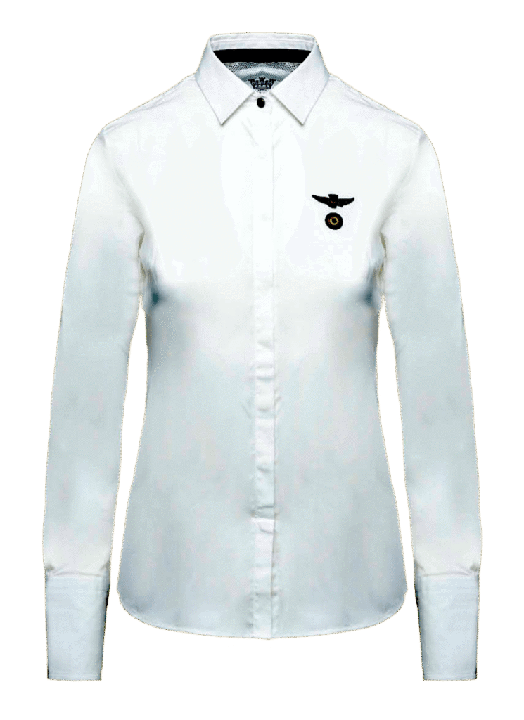 La marca italiana reinterpreta uno de los básicos de fondo de armario femenino con esta camisa de popelina, blanca, con un toque deportivo y confeccionada en tejido elástico. En Aeronautica Militare, 71,40 €