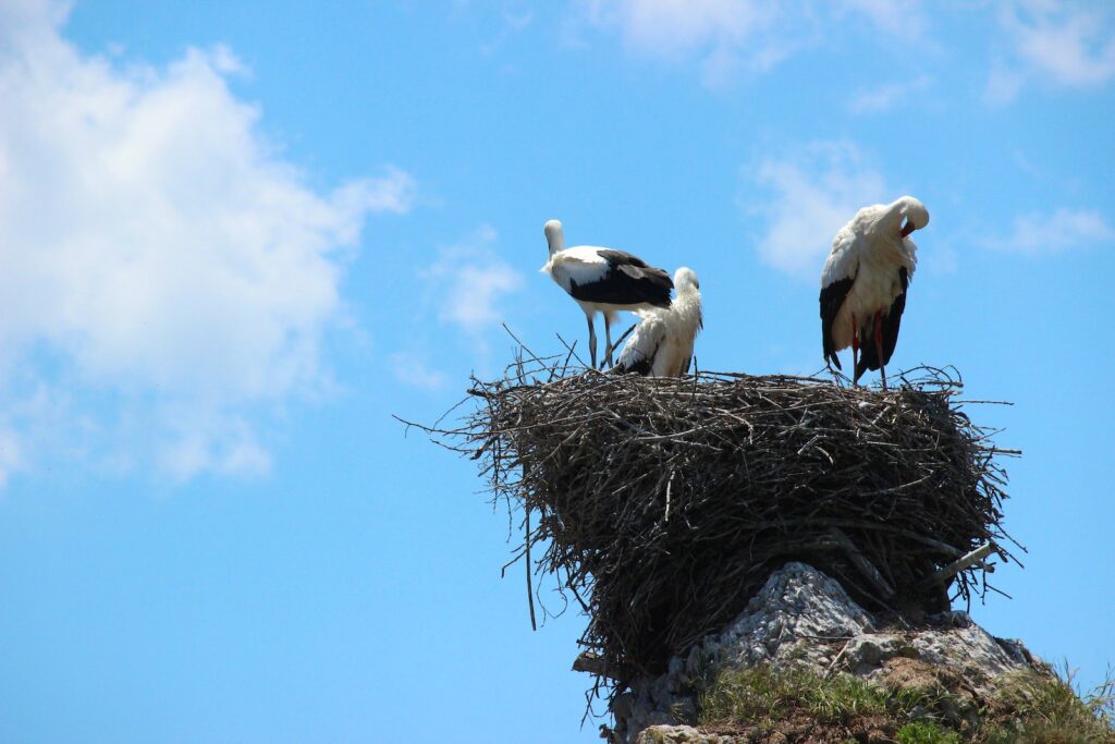 que verás pastando libremente y que suelen destinarse a alimentación. El macizo de Peña Ubiña vigila todo el valle de San Emiliano, incluidos los cientos de cigüeñas que anidan en la zona. Para verlas crecer en directo, como si de un reality se tratara, sube al Mirador de las Cigüeñas, el lugar perfecto para fotografiar sus nidos.