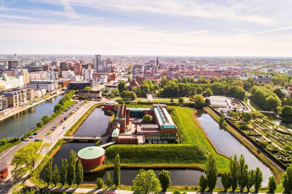 No hay ciudad histórica que se precie sin un buen castillo, y Malmö lo tiene, solo que su estilo lo aleja de los cánones arquitectónicos de los castillos medievales de Europa. Esta histórica fortaleza del siglo XVI fue prisión y, en la actualidad, alberga el Museo de la Ciudad, el de Arte y el de Historia Natural. A su lado, Slottsparken (parque del Castillo) ofrece 21 hectáreas verdes perfectas para pasear y reconectar con la naturaleza y alguna que otra sorpresa, como Slottsmollan (el molino del Castillo). Si te quedas con ganas, separado por uno de los canales que atraviesan la ciudad tienes el Kungsparken (parque del Rey), el más antiguo de Malmö, un lugar donde tomar el sol o disfrutar de un picnic a la sombra de sus tres exclusivos habitantes: un roble turco, un árbol del cielo y un castaño centenario.