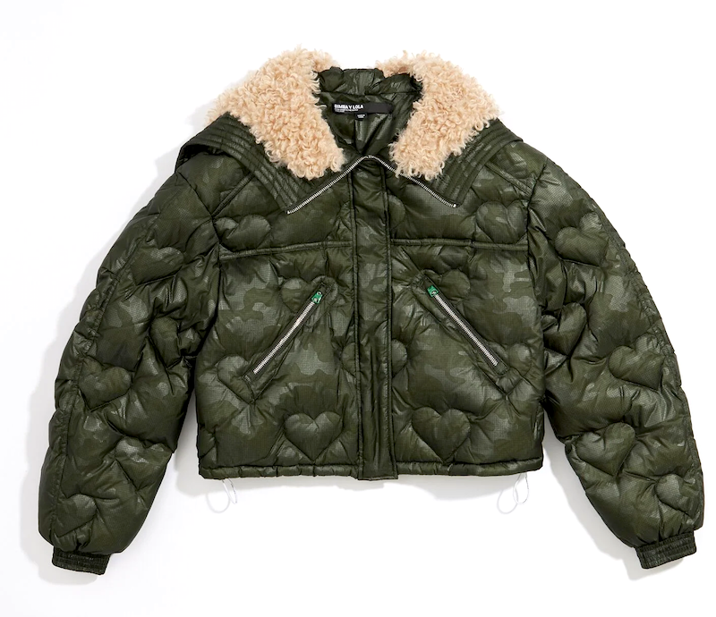 Abrigarte a base de corazones es posible. Y si no, échale un vistazo al plumífero Tiger Liquid verde oscuro, con guateado en forma de corazón. En Bimba y Lola, 192 €