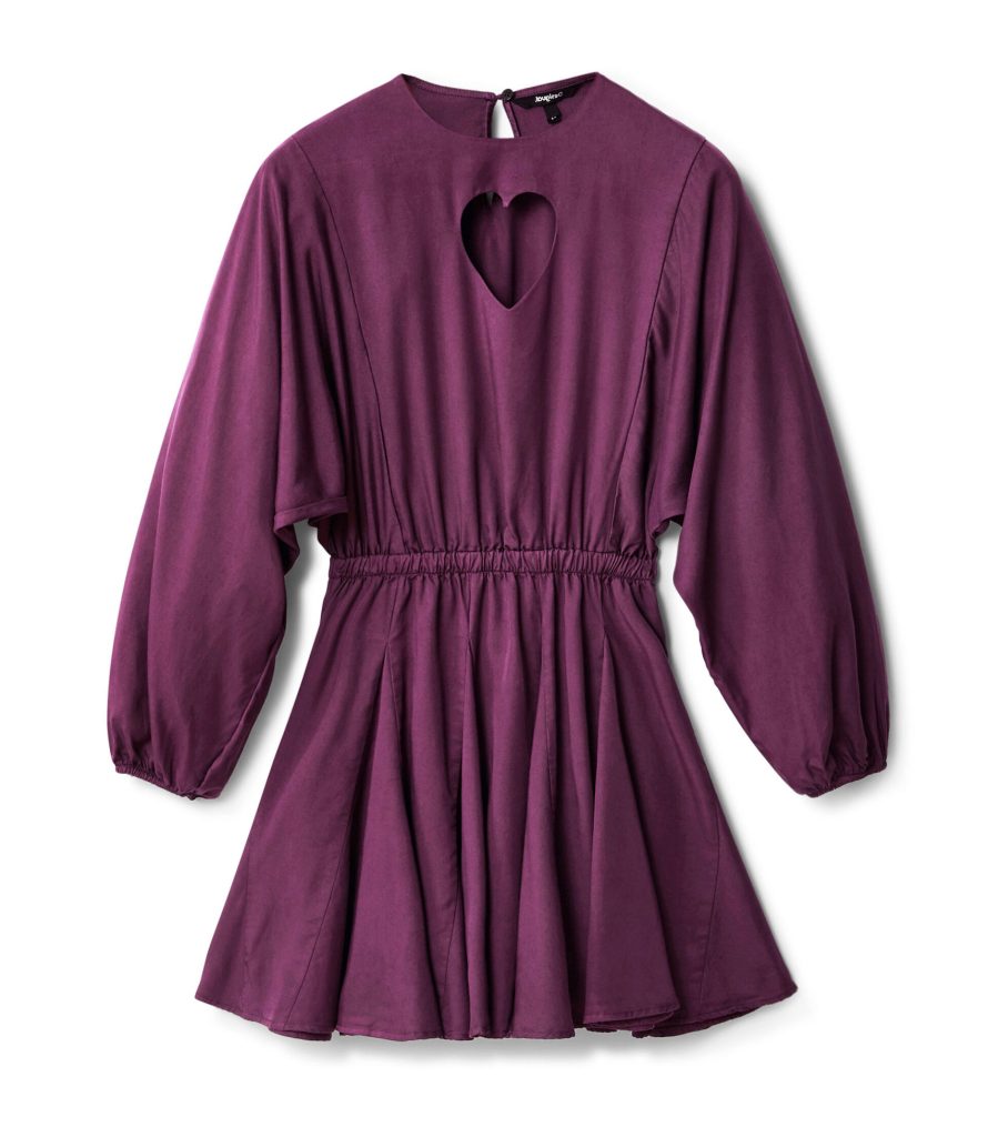 Si no quieres un total look de corazones pero sí poner una nota en tu outfit, te encantará este vestido corto, con cut-out de corazón en el pecho. En Desigual, 49,97 €