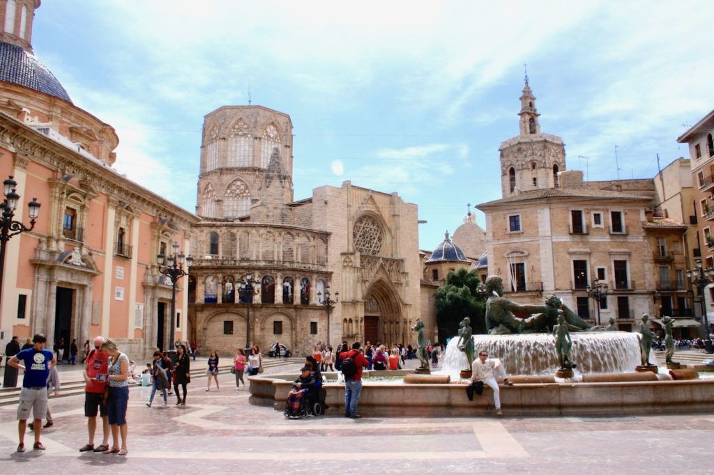 En la parte posterior a la Plaza de la Reina, de espaldas a la seo, verás la Plaza de la Virgen y su fuente, con una estatua semitumbada del río Turia: ¡ojo! No es Neptuno. Aquí se reúne cada jueves el Tribunal de las Aguas, una antiquísima institución –la más antigua de Europa y una de las más antiguas del mundo– declarada Patrimonio de la Humanidad, que soluciona problemas de riego de las huertas. Es otro sitio para constatar que a Valencia le sientan muy bien las plazas, un espacio monumental que, junto a la Catedral, alberga la Basílica de la Virgen de los Desamparados y el Palacio de la Generalitat.