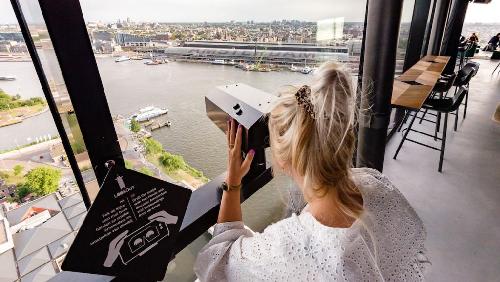 Ahora, sus 22 pisos culminan con este columpio desde el que puedes volar y balancearte sobre Ámsterdam y ver sus canales a vista de pájaro. Una atracción única para los amantes de la adrenalina que no sufran vértigo. La entrada (16,50 €) también incluye acceso a los binoculares interactivos y a Amsterdam VR, una montaña rusa de realidad virtual. Y, por la noche (abren hasta las 22 h), los fines de semana se llenan de música con una sesión DJ en el restaurante panorámico.