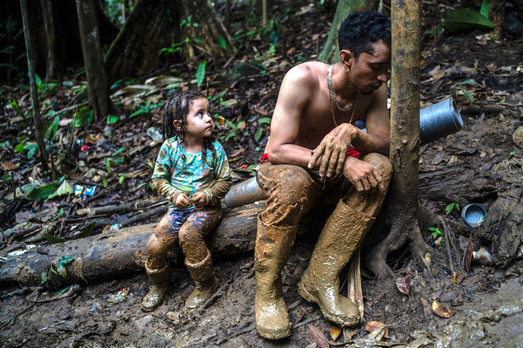 Luis Miguel Arias, de 28 años, descansa con su hija Melissa, de 4, mientras suben una colina en septiembre de 2022. Son venezolanos y unos de los más de 250.000 migrantes que cruzaron la brecha en el Tapón del Darién, una franja de 100 kilómetros de densa selva que conecta Colombia y Panamá.