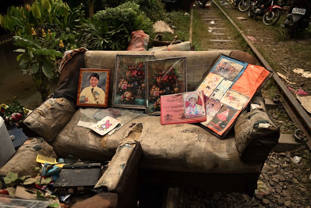 Tras las lluvias constantes de la tormenta tropical Trami en octubre de 2024 –a la que seguirían tres tifones más–, las fotos de graduación y familiares se secan sobre un sofá dañado por las inundaciones. En Naga, al norte de Filipinas, una zona en la que desde 2012 los tifones han aumentado un 210 %.